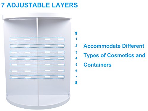 Makeup Organizer - 360-Degree Rotating Cosmetic Storage Case - Large Capacity – 7 Layers DIY Adjustable Versatile Makeup Holder - Fit Toner, Creams, Makeup Brushes, Lipsticks-Space Saving - White