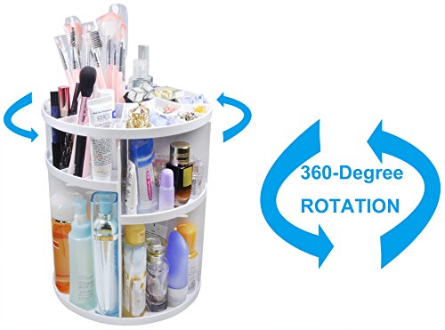 360 Revolving Makeup Organizer: This rotation makeup organizer is a great design for women. The storage carousel rotates smoothly and silently. With its steady 360 rotating base, you can instantly access your cosmetics and get whatever you need in no time by only rotating the organize so as to eliminate your frustration and desperate searching time.