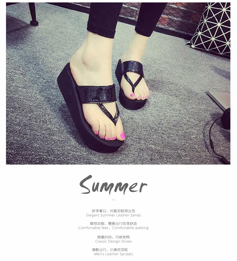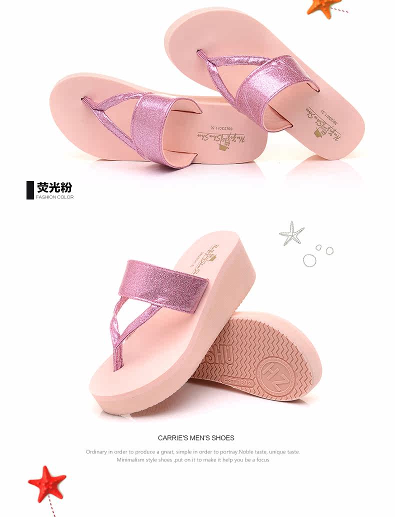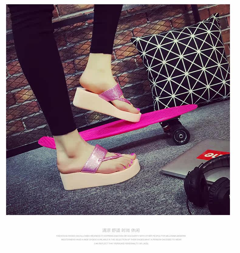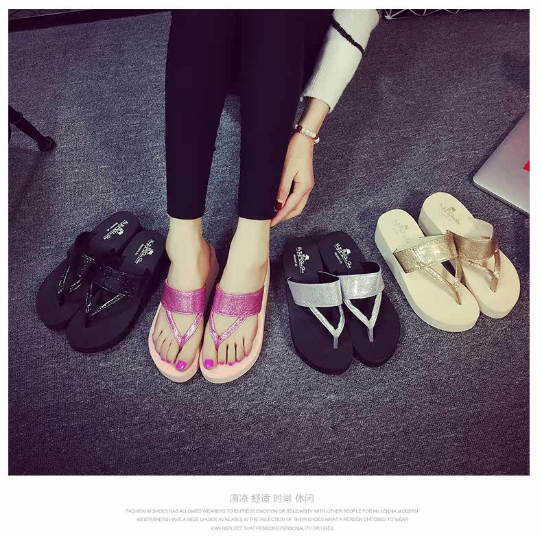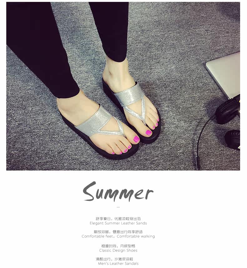 拖鞋女夏防滑坡跟人字拖韩版时尚高跟一字夹拖学生新款夹脚沙滩鞋