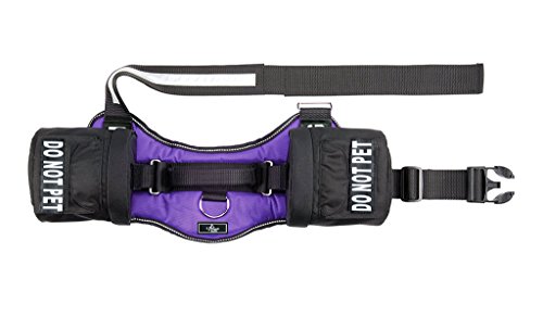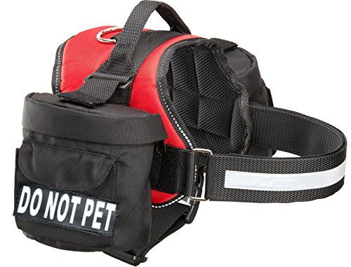 -. Binding : Misc. -. Brand : Doggie Stylz -. Feature : 2 removable reflective Velcro patches one for each side of harness / 2 removable saddle bags that feature interchangeable Velcro identifying panels / Reflective strip and lettering on both sides for added safety / Underside is made of Neoprene which adds reinforcement and guards against abrasions / 2 Adjustable Straps for premium & custom fit -. Label : Doggie Stylz -. Manufacturer : Doggie Stylz -. PackageQuantity : 1 -. ProductGroup : Pet Products -. ProductTypeName : PET_SUPPLIES -. Publisher : Doggie Stylz -. Studio : Doggie Stylz -. Title : Do Not Pet Dog Harness vest with Removable Saddle Bag Backpack Harness Carrier Traveling. 2 removable DO NOT PET Velcro patches. Please measure dog before ordering.