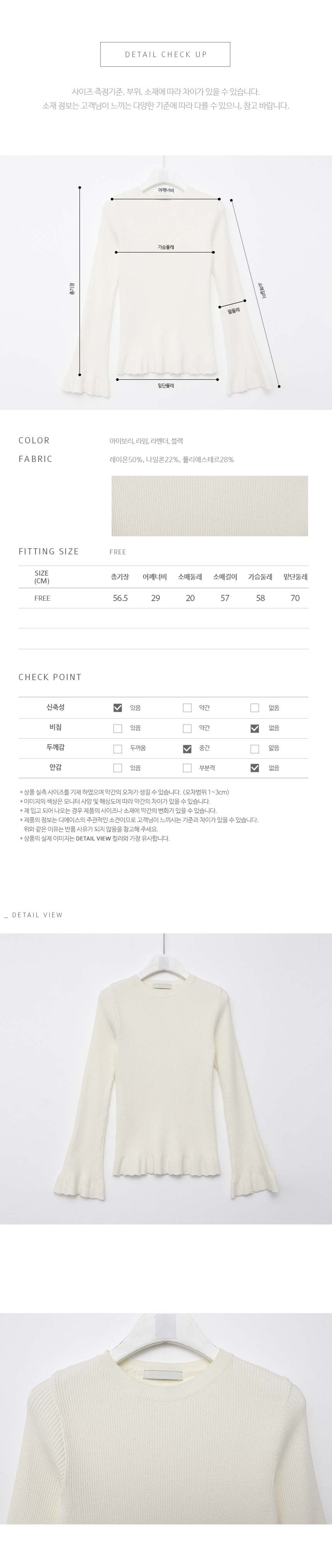 부드러운 소재감으로 톡톡한 짜임에 편안하게 늘어나 입었을 때 기분 좋은 니트예요. 전체적으로 골지 짜임에 바디라인이 드러나는 핏으로 밑단과 소맷단에 레이스 문양으로 짜임을 달리해 자연스럽게 나팔 라인으로 늘어나는 스타일이 멋스러워요! 골반을 살짝 덮는 길이감으로 팬츠, 스커트 등 코디하기 좋은 아이템이랍니다^^ 색상은 아이보리, 라임, 라벤더, 블랙 사이즈는 FREE44~66 ▼ 관련상품 : 모노 뒷밴딩 기본 슬렉스키라 날개 베스트