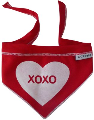 -. Binding : Misc. -. Brand : I See Spot -. Feature : Be Mine / XOXO Reversible Valentine's pet bandana scarf / Made of soft and comfortable cotton with a bit of lycra / Great gift! / Machine Washable / Made in the U.S.A. -. Label : I See Spot -. Manufacturer : I See Spot -. PackageQuantity : 1 -. ProductGroup : Pet Products -. ProductTypeName : PET_SUPPLIES -. Publisher : I See Spot -. Studio : I See Spot -. Title : I See Spot Be Mine / XOXO Pet Bandana Reversible Scarf in Red