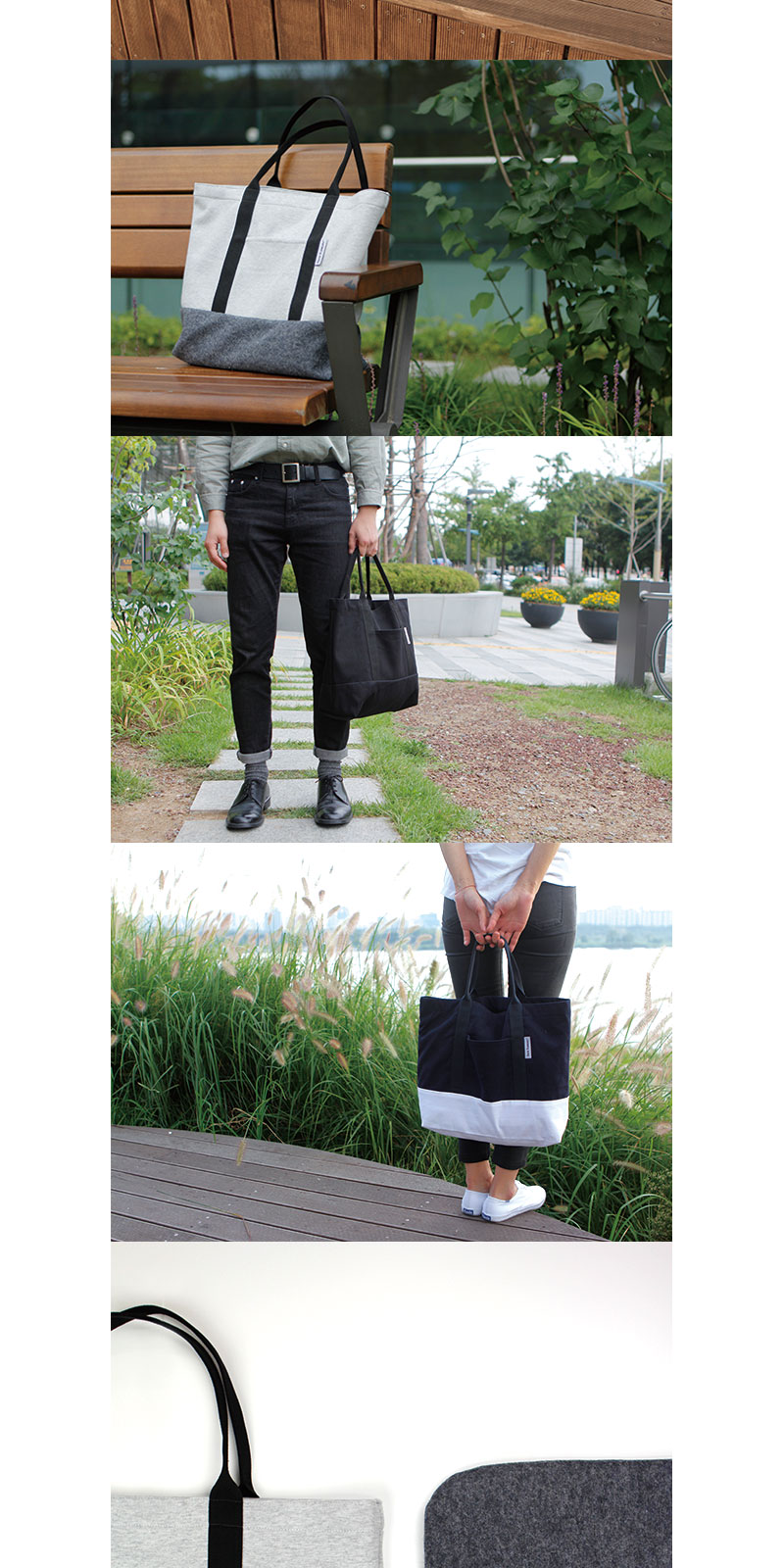 가볍고, 간단하며, 컬러풀하게 들고 다니는 세컨드 백으로, 언제 어디서나 어울리는 에코백입니다.