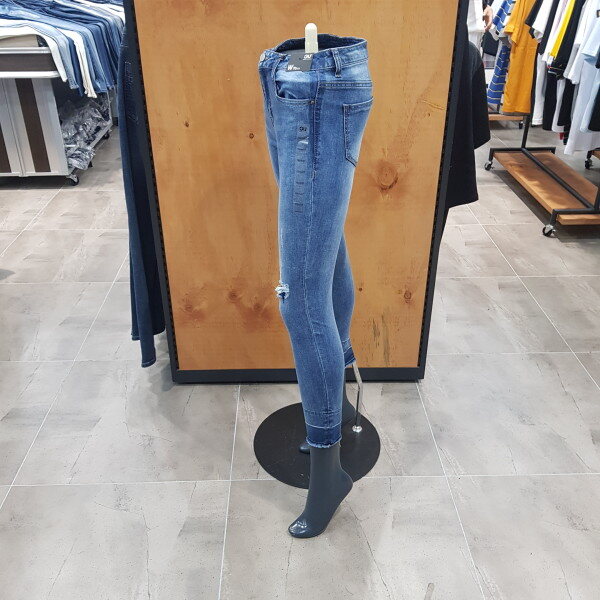 허리 양쪽에 워싱 자국으로 음영을 넣은 디자인으로 허리 라인이 잘록해보이는 제품. 밑단 역시 워싱자국을 넣어 트렌디한 제품