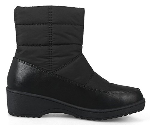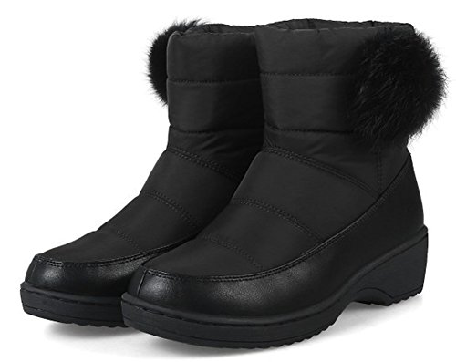 Binding : Apparel Product Description This pair of shoes is for women, girls, juniors and young ladies. You will look fashionable and stylish when wearing them. The heels measures 1.9 inches. You will feel comfy when walking with them. So you will not feel too tired when walking with them. This pair of shoes features solid waterproof upper and pull on closure. The design of round toe will make you look cute. The faux fur lined will keep you warm all winter. The sole is made of good rubber. You will feel comfortable in their soft bottom. They are of high quality and durable. 0
