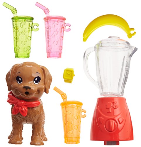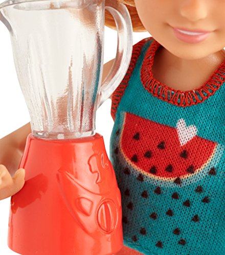 -. Feature : Barbie doll's younger sisters are ready to serve up fun with tasty treats / Stacie doll celebrates fruity drinks dressed in a watermelon-decaled tank / Has a puppy with matching bandana / Comes with a blender, banana and juice drinks. / Collect them all!