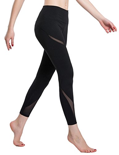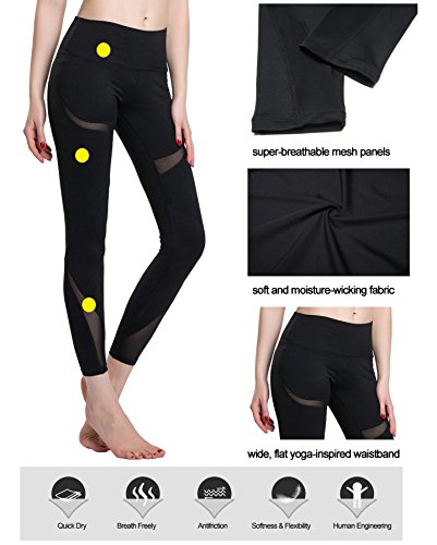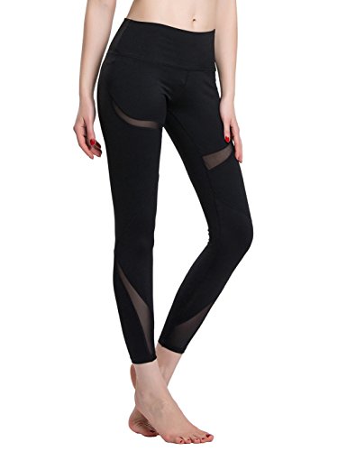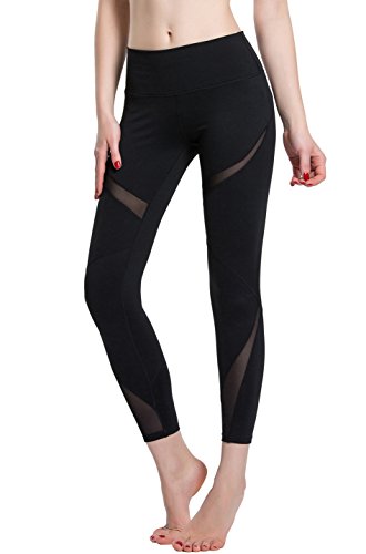 친 팬(ChinFun) 레이디스 10분의 9장 요가 레깅스 요가 팬츠 런닝 팬츠 타이츠 메쉬 흡한 속건 블랙 사이즈M