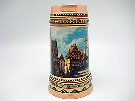 Studio : Essence of Europe Gifts E.H.G Publisher : Essence of Europe Gifts E.H.G Product Description A great gift collectible picturing the famous German village of Rothenberg. (Height:6.5") This collectible decorative beer stein is part of a series of five steins from shot size to tankard size. Colorfully decorated collectible beer steins are popular around the world from Oktoberfest to social gatherings. The origin of German Beer Steins date back to the 14th century. In German-speaking regions a stein may be known as "Humpen" (if stoneware) or "Steinkrug" (if earthenware). "Beer Stein" derives from the German words "Bier" (beer) and "Steinkrug" (literally stone crock). 0 |