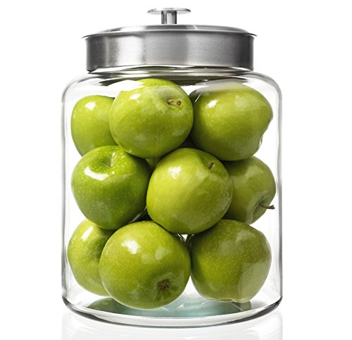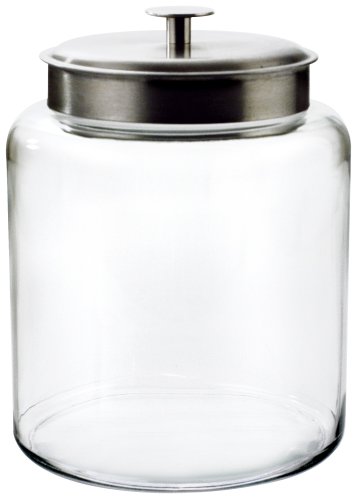 - Large capacity 2-gallon Anchor Glass storage jar featuring a stainless steel metal lid