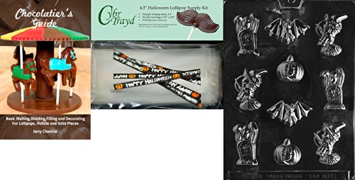 Cybrtrayd "Assorted with Bat" Chocolate Mold with Chocolatier's Bundle, Includes 50 Cello Bags and 50 Happy Halloween Twist Ties