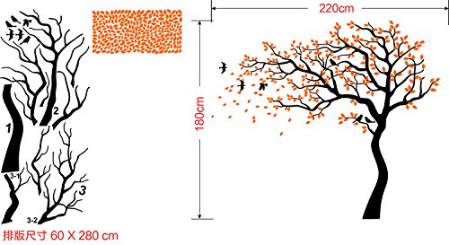 -. Feature : Self-adhesive wall sticker mural paper falling tree decals,home decoration DIY item / Made of eco-friendly vinyl from China / Recommend on wall size:220x180cm/86.6x70.9",finish on wall size all depend on your preference / It can be suitable for any clean,dry,smooth surface.Easy peel and stick ,removable and waterproof / Make you easy to decorate your home and have a new visual impact