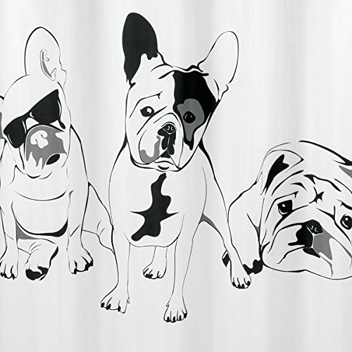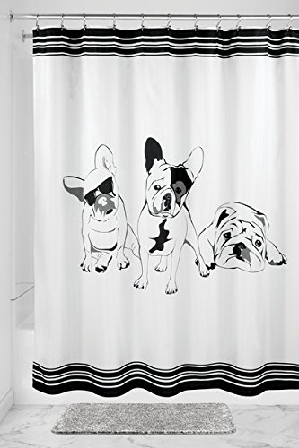 mDesign French Bulldog Fabric Shower Curtain, 72" x 72" - Black/White