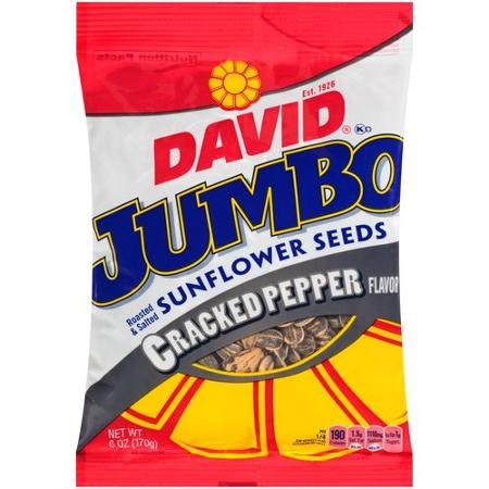 David's, Jumbo Sunflower Seeds, Cracked Pepper Flavor, 5.25oz Bag (Pack of 4)