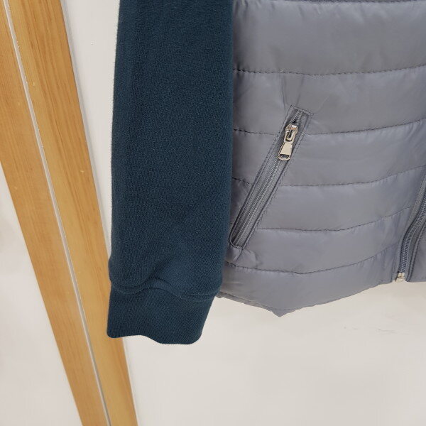 퀼팅배색점퍼입니다.그레이색상과 청그린색상 조화가 고급스러운 점퍼입니다.