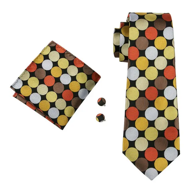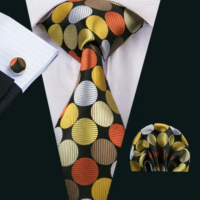 | [해외]LS-1516 배리. 좋아서 클래식 남성 넥타이 100% 실크 노란색 폴카 도트 넥타이 손수건 커프스 세트 남성 웨딩 파티 비즈니스 |