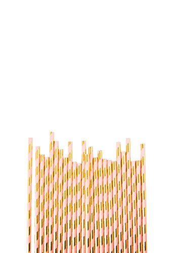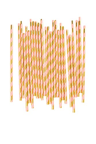 -. Title : Coral and Foil Gold Stripes High Class Paper Straws for Parties, Weddings, Baby Showers & More: Gold Star Straws - Disposable & Eco- Friendly, 100% Biodegradable , Unique & Elegant Designs (set of 75)