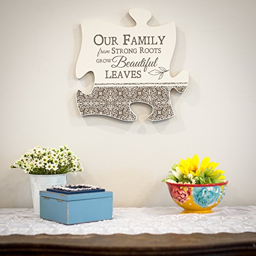 Our Family Strong Roots 12 x 12 Inspirational Puzzle Piece Wall Art Plaque