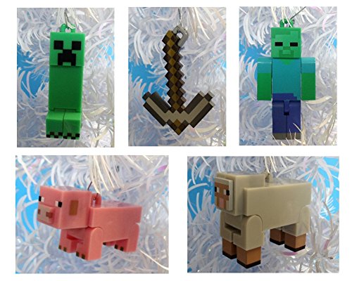 Minecraft Christmas Ornaments Featuring 5 Minecraft Ornaments with Pig, Sheep, Pickaxe, Zombie and Creeper, Ornaments Average 2 1/4 to 3 Inches Tall, Great for a Mini Christmas Tree