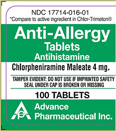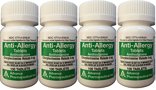 Title : Anti-Allergy Antihistamine Chlorpheniramine Maleate 4 mg Generic for Chlor-Trimeton Allergy 100 Tablets per Bottle 4 PACK Total 400 tablets