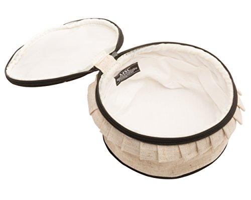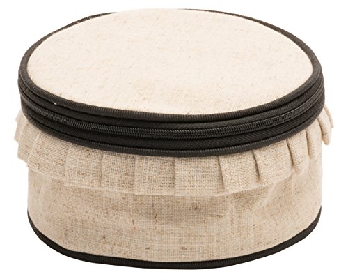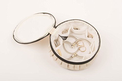 Mainstreet Collection Round Jewelry Case, Inner Pockets To Organize Jewelry, Larger Sections Holds Bracelets, Watches and Necklaces, Zipper, 3-1/4-Inches by 6-Inches, 100% Linen With Black Moire Trim