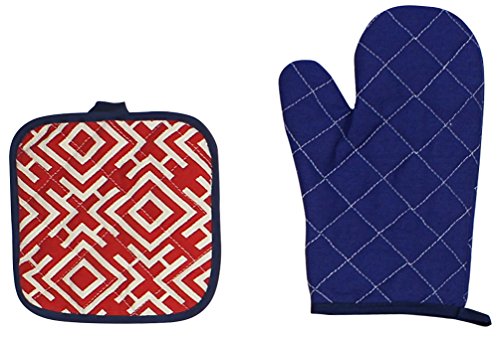 This 3-piece kitchen apron set includes an apron with a matching pot mitt and pot holder.