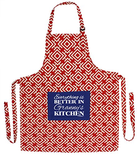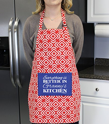 Christmas Gifts for Granny Everything is Better in Granny's Kitchen Funny Aprons 3-piece Cooking Apron Set with Oven Mitt and Pot Holder Funny Apron Red Greek Square