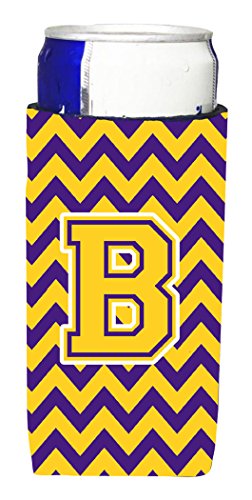 Letter B Chevron Purple and Gold Ultra Beverage Insulators for slim cans CJ1041-BMUK