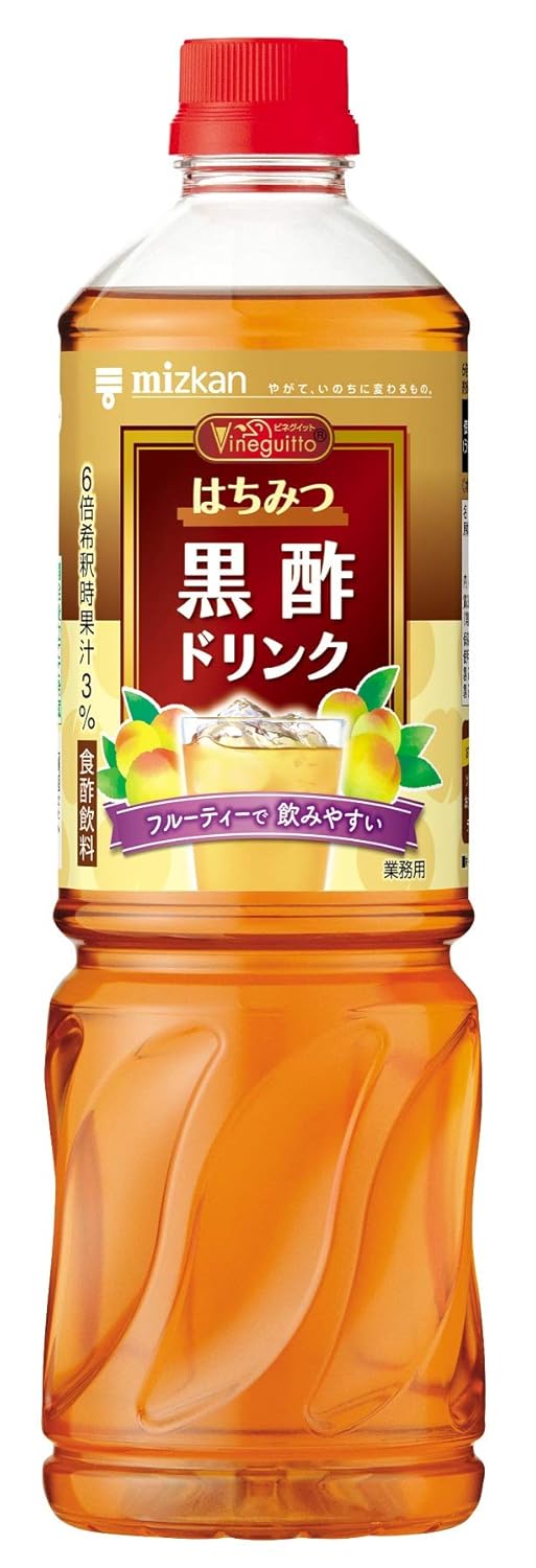 内容量:1000ml 原材料:米黒酢、梅果汁、りんご酢、はちみつ、砂糖、黒糖入り砂糖液、酸味料、香料、ビタミンC、甘味料(スクラロース) 商品サイズ(高さ×奥行×幅):82mm×274mm×82mm