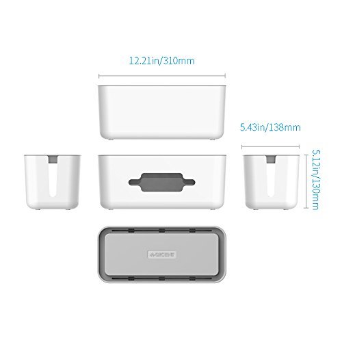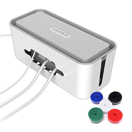 QICENT Cord Organizer Box for Power Strips,adapters, USB Hubs, Surge Protector, TV/Computer Cable,12.2x5.43x5.18 Inches Large with 2 Cable Ties for random