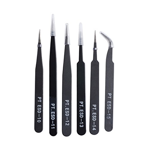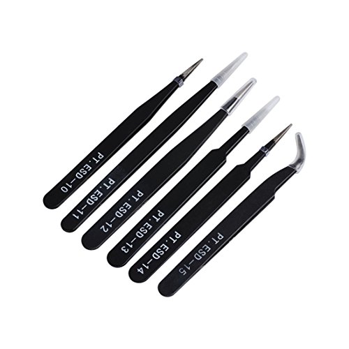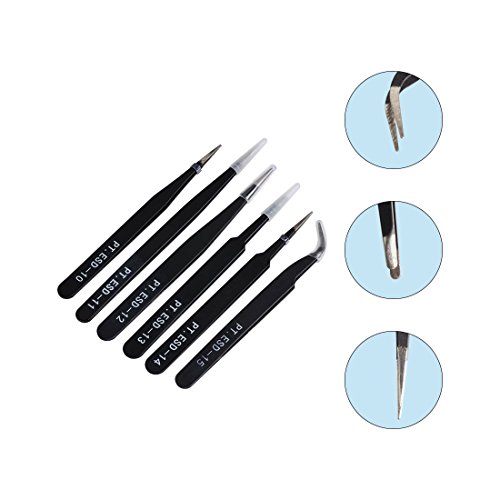 Wolfwhoop 6021 6PCS ESD Carbon steel Tweezers Kit Pickup Electronics DIY Repair Tool