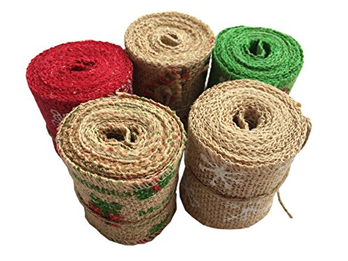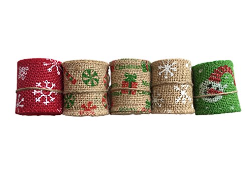 Christiiner 5 Pieces Christmas Decorations of Linen a Volume of 2.1Yard, a Total of 5 Rolls 10.5 Yard (2.4" Width)