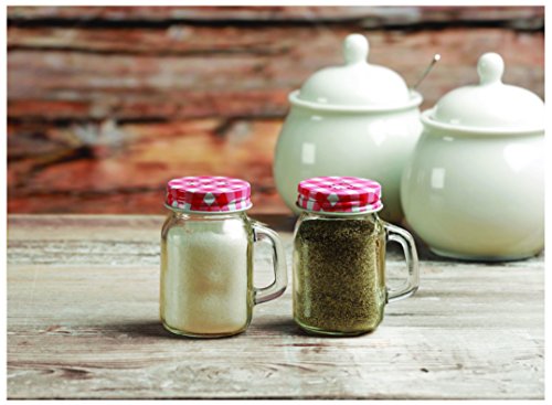 Circleware Yorkshire Mason Jar Mug Glass Salt and Pepper Shakers with Glass Handles and & Lids, Set of 2, 5 oz., Clear