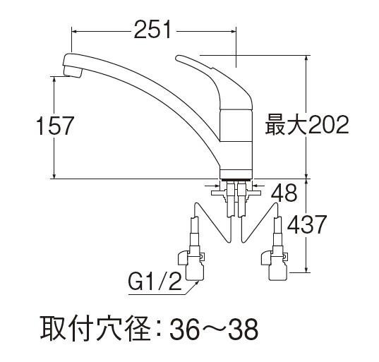 キッチンで使用する、上面施工式のシングルワンホール混合栓です。