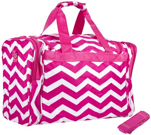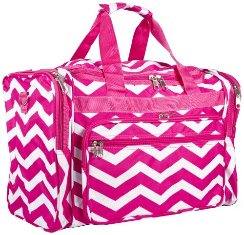 Product Description Stand out in style with this designer print duffle! This piece of lightweight luggage is great for jetsetters and can be used for a quick, close by staycation or for a weekend excursion to your favorite retreat. It's chic and fashionable design makes it a perfect choice for transporting gear for dance teams and cheer squads too! You can carry your cute duffle by its included durable, detachable shoulder strap or slide it easily over the handle of a rolling suitcase for stress-free and efficient, stylish transport. Never lose your boarding pass, ID, or other smaller items with two exterior zipper compartments on the front of this security checkpoint friendly bag. Fully lined, keeping it clean is easy! This multipurpose bag can also be used as an attractive diaper bag for the mom on the go! 0