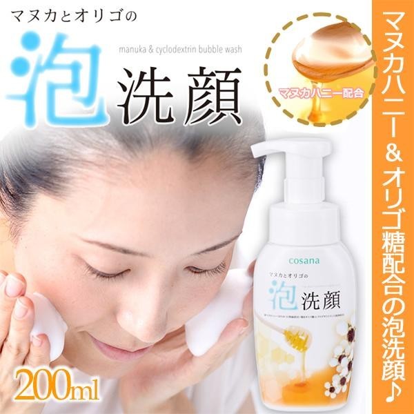 | マヌカハニー(ハチミツ/保湿成分)&環状オリゴ糖(シクロデキストリン/洗浄成分)配合の泡洗顔♪合成香料・合成着色料不使用!!プッシュした瞬間にフワフワの優しい泡が出てきます。 |
