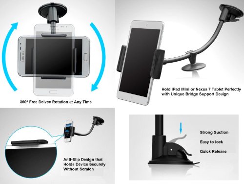 The AboveTEK Car Mount will work perfectly with: Apple iPhone 6+/6/5S/5C/5/4S/4, iPad Touch, Samsung Galaxy S5/S4/S3/Mega, Galaxy Note 4/3/2, Google Android Nexus 7/6/5/4, HTC Desire, LG Optimus, Motorola Moto X, Nokia Lumia, Blackberry, Sony Xperia, Windows Phone 8, Kindle Fire HD, Dell Venue, Lenovo IdeaTab Acer Iconia Tab, Galaxy Tab, Apple iPad Mini. Virtually any smartphone phablet and 6~8 inches tablet will work perfectly with this Car Mount System.