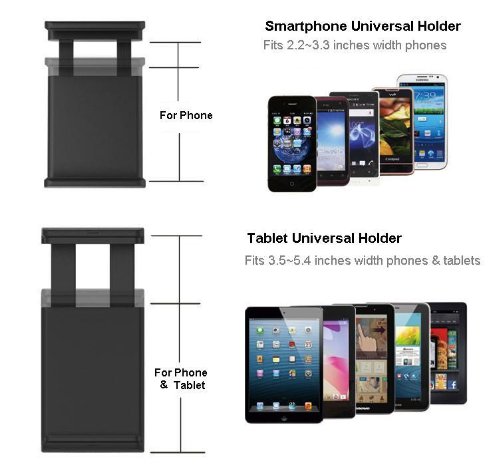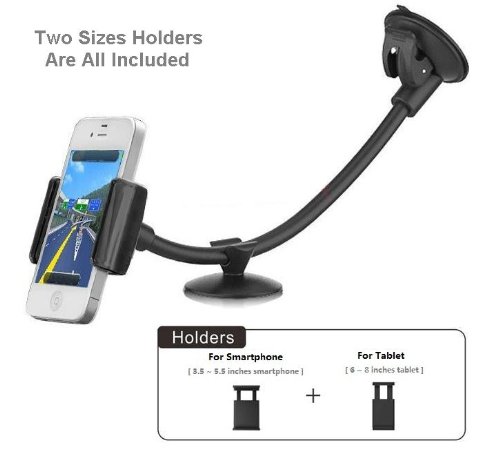 Fits all Gadgets Width Between 2.2-5.5 inches. Strong Suction and Very Steady Support with Two Sizes Holders - Excellent for Large Screen iPhone 6+/6/5S/5 Galaxy S6/S5/S4/S3 Note 4/3/2 Mobile phones and 7~8 inch tablets or other Electronic Devices