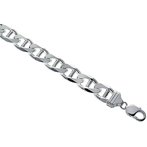 This Silver Flat Marina Chain is Made In Italy,and of Highest Quality, and Quantity of silver. We didnÆt Flatten this chain to make it look wider, so youÆll get a chain that youÆll feel the weight and is made to last.It is 17/32 inch (13.5 mm) wide and it comes with a Lobster Claw Clasp for Security. Completely NICKEL FREE, it won't cause any allergic reactions due to contact with nickel.Feature