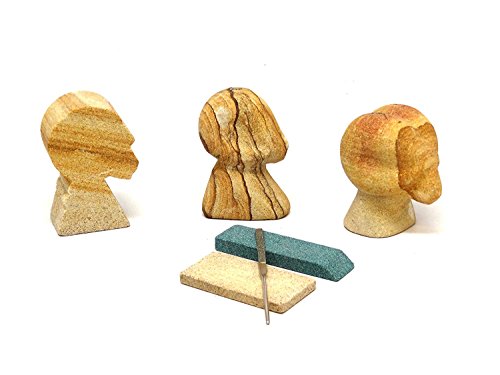 ALL INCLUSIVE KIT - Box includes all necessary supplies - sandstone, rough carving file, and a metal file for fine details. No additional accessories or items required outside of kit. Comes in your choice of the following animal options: Bear, Coyote, Eagle Head, Fish, Owl, Penguin, Ram, Ram Head, Seahorse, Seal, Buffalo. For ages 6+.