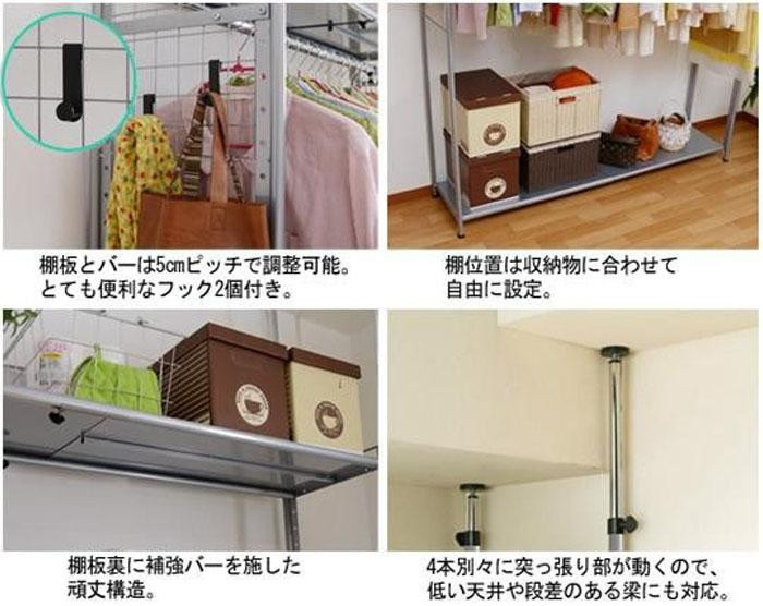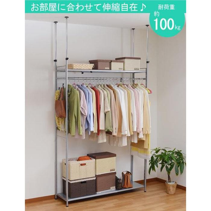 | 仕様 | 全体許容耐荷重:100kg(棚部分30kg×2本/ハンガー部分40kg) 組立式(所要時間約60分) 棚板・バー:可動式(5cm単位) |