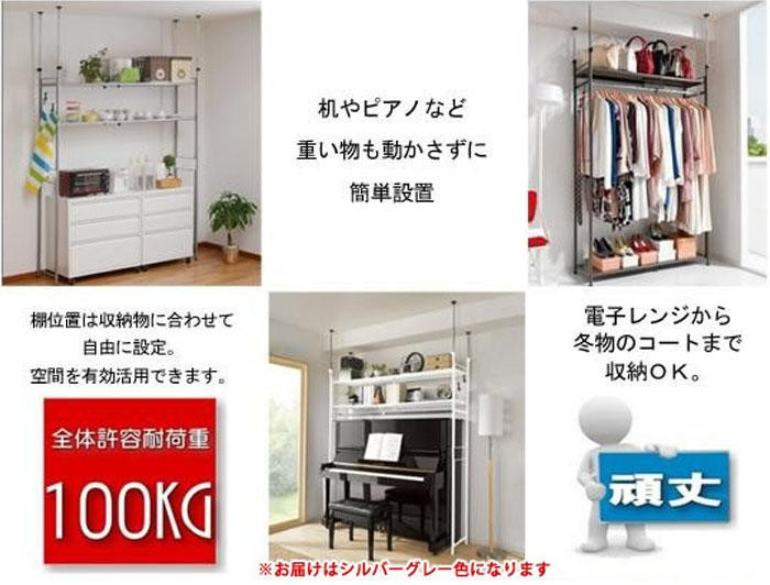 収納が欲しい場所の上部の空間を有効活用☆衣類収納からキッチン収納まで多用途に使える頑丈なスチールラックです。幅は103~160cm、高さは195~260cmの間で伸縮自在!!また、棚板とバーは5cmピッチで調整可能。お部屋の広さや収納するもののサイズに合わせてお使い頂けます。 |