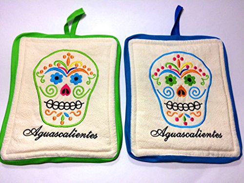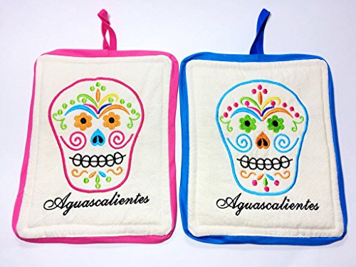 Handmade Mexican Skulls Pair of Pot Holders Assorted colors