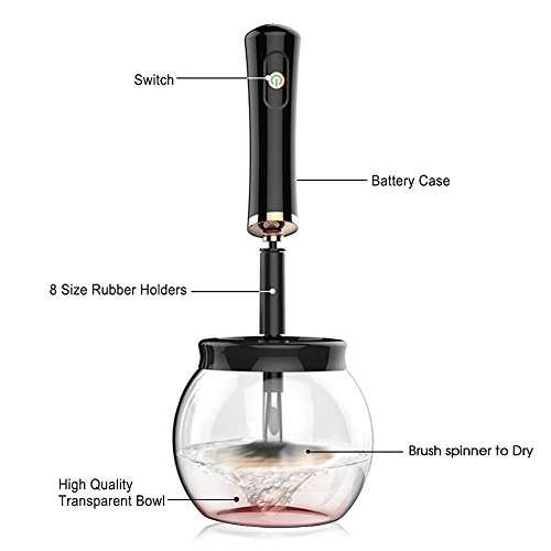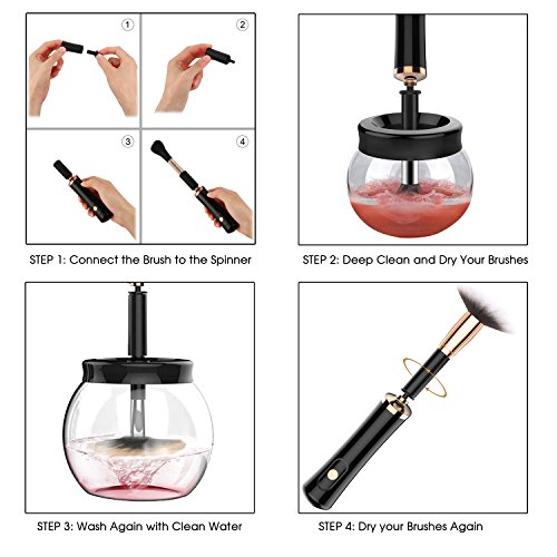 - ♥Easy to use & Deep Clean: ♥ That allows you to clean brush in a simple and effective way and you will save time instead of cleaning them manually. It can deep clean and dry your brushes with high rotating speed in just a couple of seconds. Meanwhile, the makeup spinner can also stop all the build-up bacteria on the brushes, strip away dead skin cells, any leftover makeup, dirt and oil. Your brush can always be kept clean and healthy with this device.