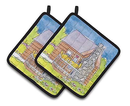 Caroline's Treasures Cat Love At The Log Cabin Pair of Pot Holders 6104PTHD, 7.5HX7.5W, Multicolor