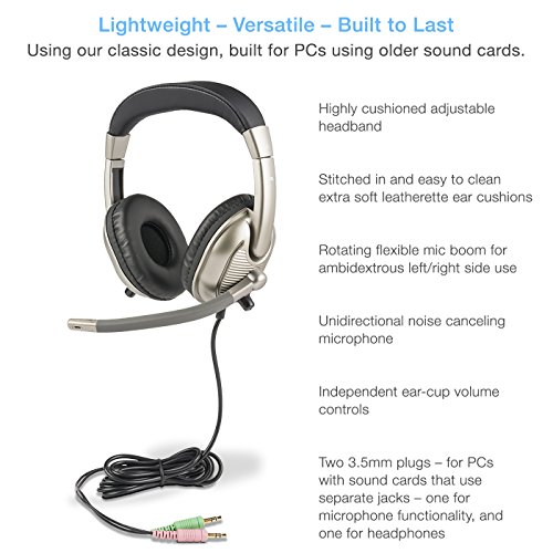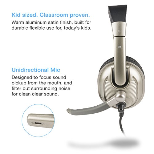 A stereo headset for children designed with kids' listening safety in mind. This headset features a safe volume level to preserve young sensitive ears, an adjustable padded headband and ambidextrous mic boom adjusts to fit small heads - on either the left or the right side. Easy to clean leatherette ear cushions enhance the comfortable fit. Durable design will withstand the harshest of use and environment. Quick and easy volume adjustment from each ear cup The Direct Noise Canceling Microphone Technology (DNCT4) allows for reliable voice recognition for student environments. Designed for PC use, using two 3.5mm audio and mic plugs. Speech / voice recognition ready. 30mm drivers.Feature