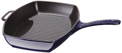 CHASSEUR FRENCH DOUBLE ENAMELED RECTANGULAR CAST IRON GRILL PAN, BLUE
