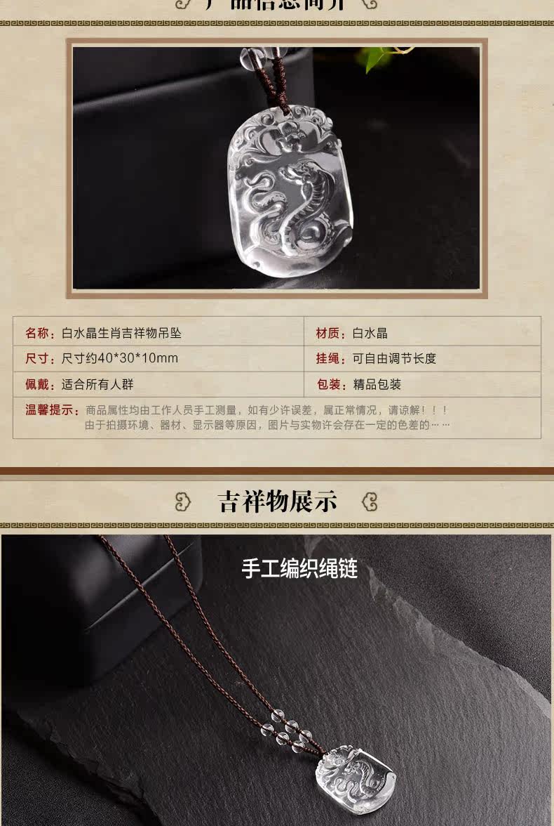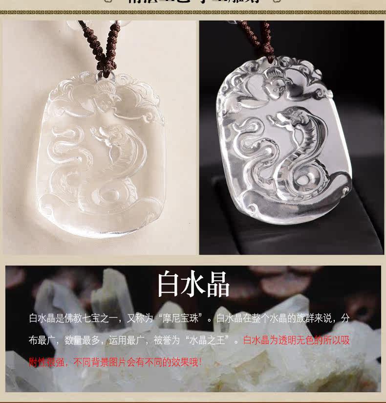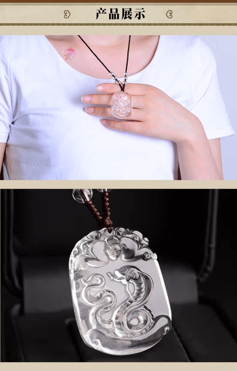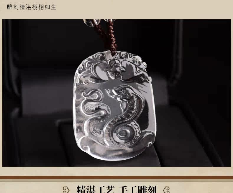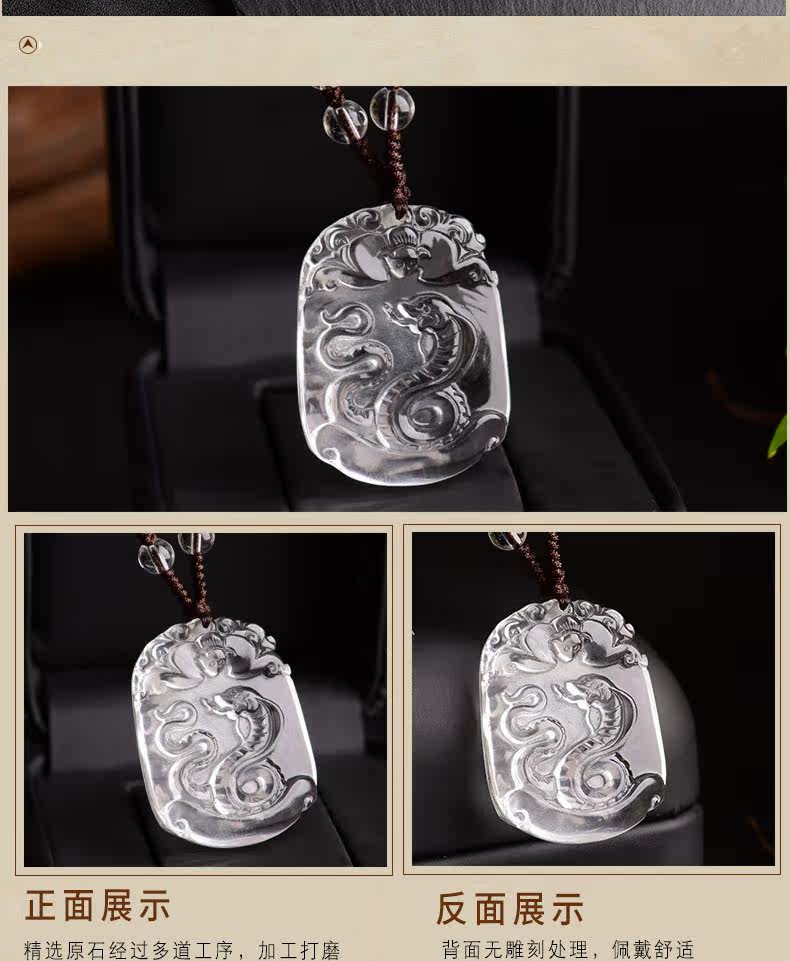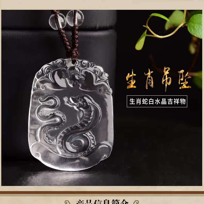 开光天然白水晶十二生肖吊坠属蛇男女士款项链饰品礼物挂件
