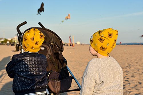 Product Description Youngsters toddler hats are designed in Brooklyn, New York. Measures approximately S - 7.5"/8" (9-18mo); M - 8.5"/8.75" (2-3yo), however M size beanie could be stretched above 3yo. 0