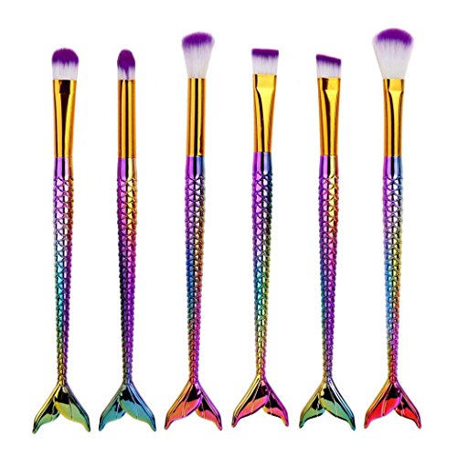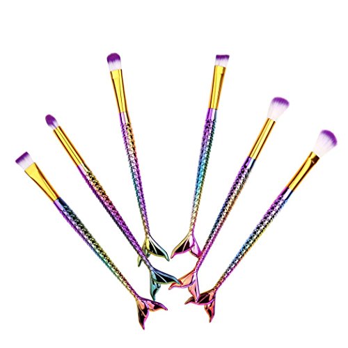 UPLOTER 6pcs Mermaid Eye Brushes Set Cosmetic Eyeshadow Eyeliner Blending Pencil Makeup Brush Tool Kit Cosmetic Tools