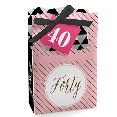 Chic 40th Birthday - Pink, Black and Gold - Birthday Party Favor Boxes - Set of 12